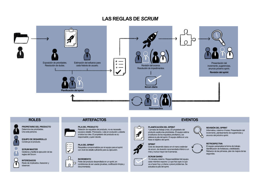 • Reseñas. Puntos de control donde se evalúa un entregable o todo el proyecto frente a los objetivos comerciales.