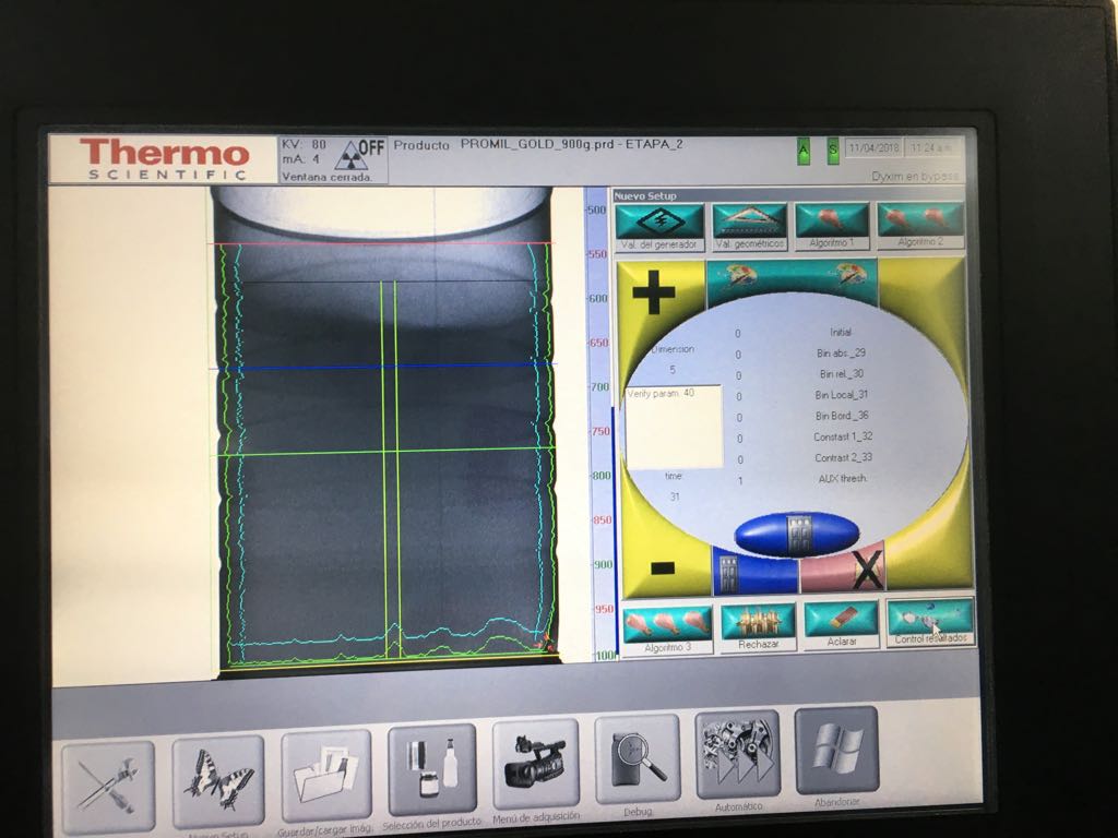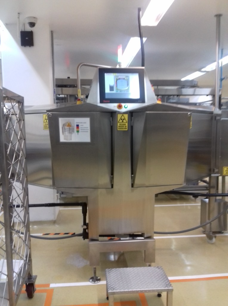 | Como se tienen dos problemáticas de dos tipos, el equipo a implementarse es un sistema de inspección de rayos X, el cual se colocara al final de línea cuando el producto ya está cerrado y no exista probabilidad de contaminarse después de la inspección. |